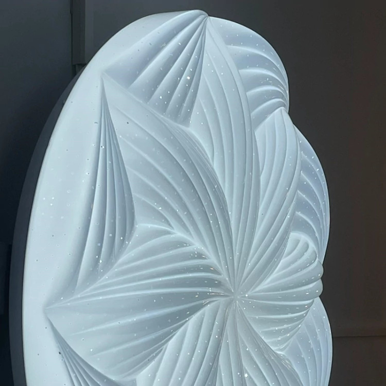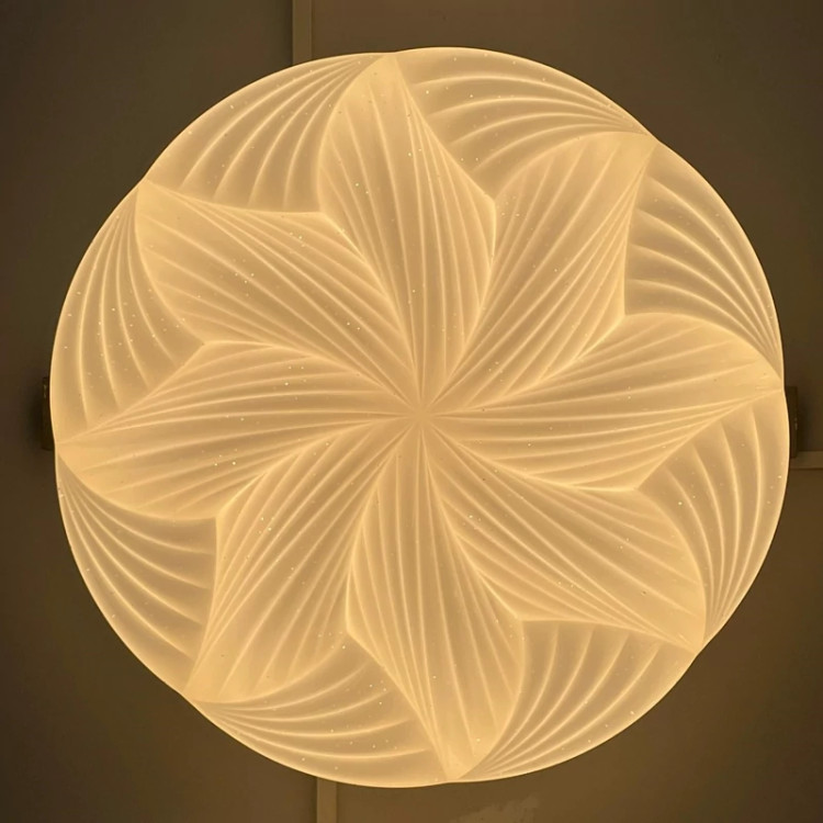 لوستر سقفی گرد طرح گل نیلوفر تولید شرکت مودی، یک محصول زیبا و لوکس است که جلوه زیبایی به سقف میدهد. این چراغها به صورت ۳ حالته (رنگ یخی ، آفتابی ، مهتابی) بوده که ابتدا رنگ سفید یا مهتابی آن روشن میشود و با خاموش و روشن کردن موجب تغییر رنگ به زرد یا همان آفتابی و با خاموش و روشن کردن مجدد رنگ زیبای نچرال یا طبیعی جلوه خواهد کرد.